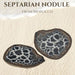 A septarian nodule is a type of concretion—basically, a hard, compact mass of mineral matter that forms in sedimentary rock. Septarian nodules are especially valued for their unique appearance, which includes a network of cracks (called septaria) filled with secondary minerals.