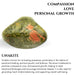 Unakite is said to be a stone of vision, opening the third eye and useful for scrying. It is also believed to be a stone of balance, grounding the self while bringing emotions and spirituality together. Among crystal healing practitioners, unakite is used to support convalescence from illness.
